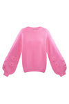 Zachte gebreide trui met subtiele bloemenstructuur en een comfortabele pasvorm. Perfect voor een vrouwelijke, cozy look in elk seizoen. Verkrijgbaar in de maten S/M en L/XL, en in meerdere kleuren.
