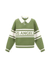 Sportieve gebreide trui met brievenprint, ideaal voor een casual en actieve look. Comfortabel te dragen in elk seizoen en makkelijk te combineren met jeans of sportieve broeken. Verkrijgbaar in S/M en L/XL.