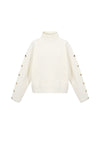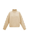 Casual gebreide trui met stijlvolle knoopdetails op de mouwen. Een tijdloze toevoeging aan je herfst- en wintergarderobe, ideaal te combineren met jeans of pantalons. Verkrijgbaar in S/M en L/XL.